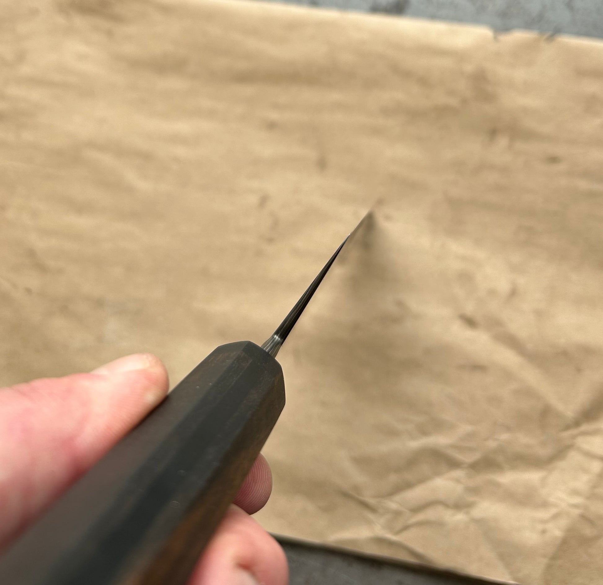 As always, the blade has been sharpened on a progression of Japanese water stones.